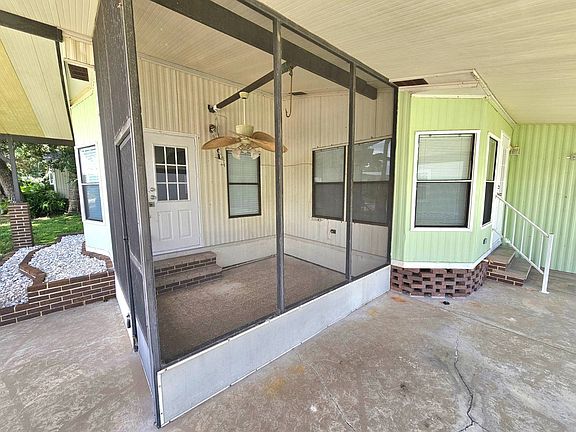 UPDATED FLORIDA HOME!!! This maintained open 2 bedroom 2 bath home boasts vaulted ceilings, ceiling fans throughout, a kitchen with with tiled backsplash & white appliances, a large master bedroom, new master bathroom with a walk-in shower, new guest bathroom with tub/shower combo, window treatments throughout, full size washer & dryer that is located within the unit, new shingle roof in 2023, an AC system which is maintained annually, gutters & downspouts, a large enclosed Florida room for all season use with friends & family, a 1 car extended carport which could easily fit two cars, two large sheds one that is attached for additional storage and a new shed on the back that could be used as a workshop. Bayshore Village is a gated 55+ community which is pet friendly and includes all the amenities you could imagine including a pool, clubhouse, shuffle board, gym, bocce ball and library. The lot fee is one of the lowest in the area at $816 per Month and is paid on a quarterly basis. The lot fee includes your lawn, trash, basic cable and the amenities. Please note: there will be a mandatory pass thru tax of $738.91 for any Bayshore resident required by January 15th of each year. This community is close to everything including shopping, restaurants and quick commutes to US-41 and I-75. Come see what Florida life is all about!