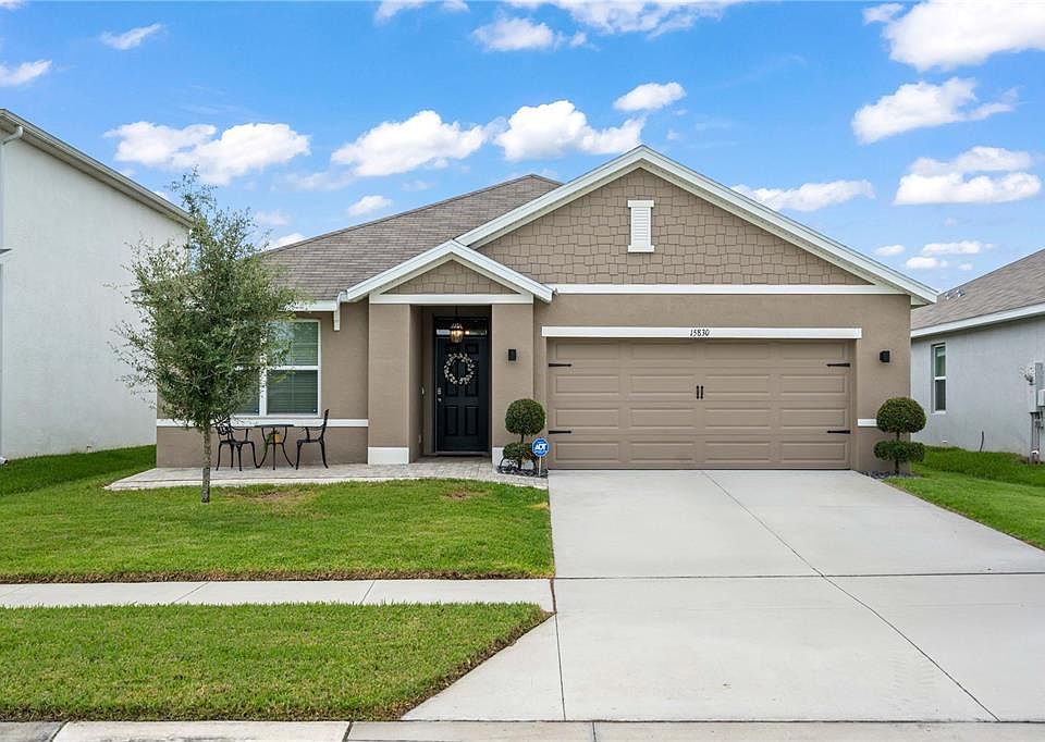 This beautiful 3 bedroom, 2 bathroom home that feels like new, with an open floor plan for both everyday comfort and entertaining. The heart of the home is the upgraded kitchen, complete with sleek granite countertops, stainless steel appliances, a water softener system, and a reverse osmosis water filtration system for added peace of mind. Tile flooring runs throughout the main living areas, while cozy carpet creates a warm retreat in the bedrooms. The spacious primary suite features two closets and a private ensuite bath with a walk-in shower. The secondary bathroom offers a tub, perfect for guests or family needs. A garage conversion provides flexible space that can be used as an office, storage, or hobby room. Step outside to a tranquil screened-in lanai where you can relax with peaceful conservation views. The backyard is fully fenced, ideal for pets, play, and privacy. Out front, the home has pavers and a front porch, enhancing both curb appeal and functionality. This home sits on a prime lot directly across from a park, offering fewer neighbors and more open space to enjoy. With a whole-home security system and thoughtful custom features throughout, this property is truly move-in ready. With close proximity to Publix and easy access to the Suncoast Express way, and only 30 minutes from Tampa. Don’t miss your chance to own this stylish and well-maintained home in the highly sought-after Preserve community!