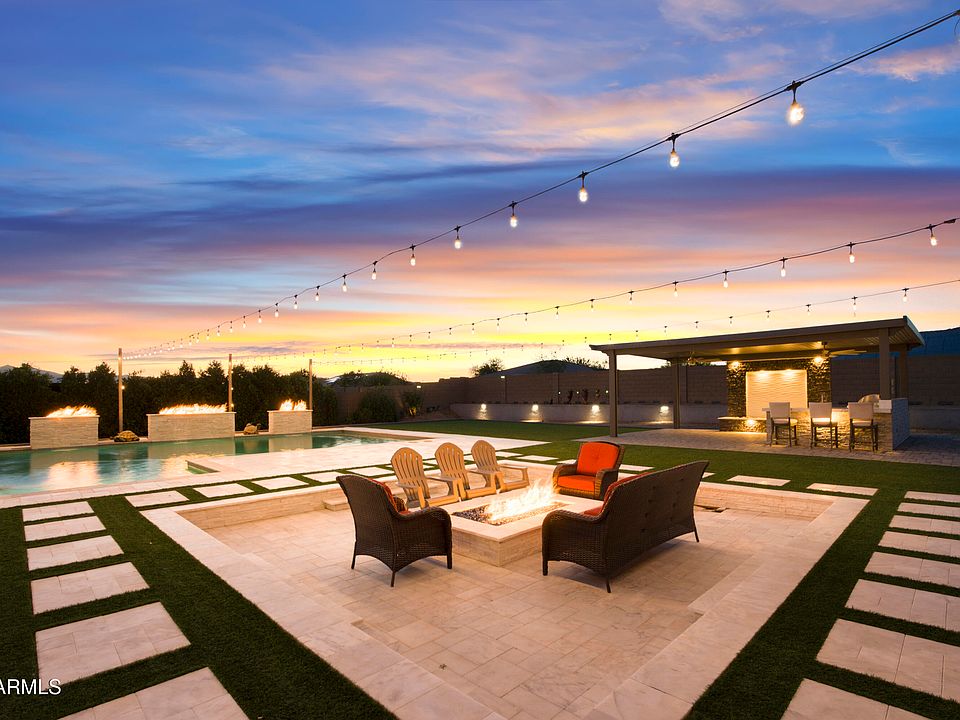 Bright open living spacesLush landscapingCustom poolPremium finishesSunken fire loungeGourmet kitchenResort-style backyard
