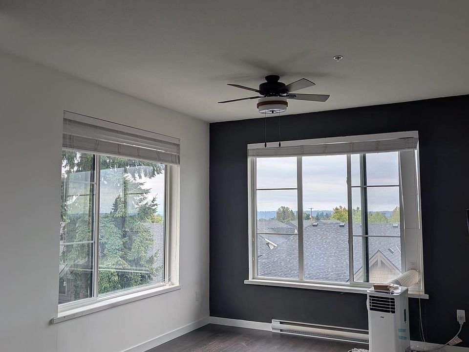 Now available: this stunning corner unit with 3 bedrooms and 2 full baths, located in the sought-after Fleetwood Village, built by Dawson & Sawyer. Move-in ready and situated on a quiet corner, this home features laminate plank flooring, breathtaking mountain views, quartz countertops, porcelain tiles, and luxurious bathrooms. The primary bedroom boasts a walk-in closet and an ensuite with side-by-side sinks. Enjoy a range of amenities, including a rooftop garden, fireside lounge, yoga studio, gym, co-working space, music room, foosball table, and billiards. Just steps from the future Skytrain, yet tucked away on the quiet side of the building. 1 parking spot included. Close to shopping, schools, parks, and more!