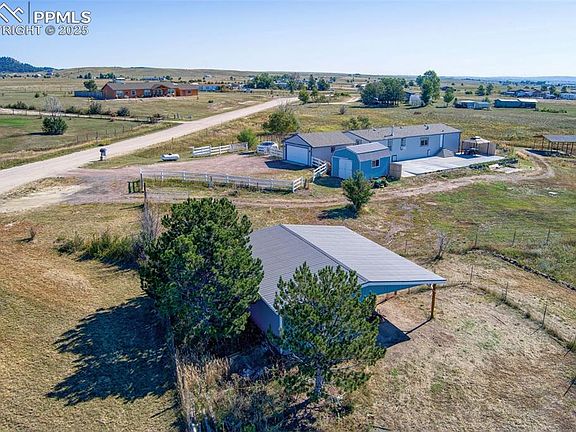 Breathtaking Pikes Peak Views, room to Roam and everything you need for Peaceful Country living—Welcome to this beautiful 3-bedroom, 2-bath home on 5.07 fenced Acres. This property is perfectly suited for those seeking Space, Functionality, and Comfort. Whether you're dreaming of a Mini Ranch, Hobby Farm, or a Private retreat with room for all your toys. Step in side to a large heated Sunroom/Entry complete with Tile floors and French doors. Inside, an updated Kitchen with a Breakfast bar, Gas Range, Large Pantry, Modern finishes and plenty of Counter space awaits. Perfect for Entertaining or everyday living. The living area has a cozy Wood-burning stove, adding Warmth and charm to your main gathering space. The spacious primary suite features a luxurious 5-piece en suite bath and a large walk in closet. There are 2 more bedrooms and a separate Laundry room giving you ample space. Step outside to enjoy Colorado’s beauty on your massive 66’ x 26’ concrete patio with Gazebo—Ideal for Outdoor dining, Relaxing, or hosting gatherings under the Open Sky. A 2-car oversized garage plus an additional 2-car carport and a Recycled asphalt driveway add to the functionality of this home. Bring your horses, animals, and RVs—the property is ready for it all. There’s a fenced pasture, a 40’ x 20’ barn/stables with Water and Electric, a 24’ x 18’ storage shed and 2 RV areas with water/electric hook-ups (one with 30 amp the other with 50 amp power already in place). This property offers the rare combination of modern Comfort and true Rural Freedom—just minutes from town, yet a world away from the noise. Whether you want space to raise animals, start a Homestead, or simply Enjoy the Views and Privacy, this one checks every box. Don't miss your chance to own a slice of Colorado Paradise with Views that will take your breath away!