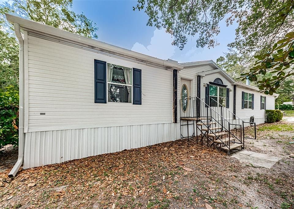 Fantastic LAND opportunity offering peace and quietness! Enter the property through the gate and see this well-kept manufactured home offering 4 large bedrooms, 2 bathrooms, over 1800 sq ft of living space, a living room with wood-burning fireplace, a great room for entertaining, separate dining room and open floor plan. Split bedrooms and inside laundry. Very spacious kitchen with vaulted ceilings, tons of counter space and cafe area for seating. Situated on 1.14 acres with cattle fencing, this zoned AGRICULTURAL land has a shed for storage and a rocked driveway with ample parking. Right outside the back door is a covered deck with electrical. Head over to the 18x33 above ground chlorine pool with deck for summertime fun! This amazing area has a large COVERED deck for shaded relaxation and entertaining. Electrical is in place/ceiling fan/ speakers and refrigerator. This home is on septic and well-no water bill! Roof 2017, AC 2016, Water Heater 2019, Newer kitchen refrigerator 2017, Pool pump filter 2014, Gutters w/leaf guards 2018. Septic cleaned 2018. NO HOA/CDD/NOT A FLOOD ZONE! So much land to use for whatever you might need! Located in Pasco County and near high rated schools. Medical, grocery, shopping and restaurants a quick distance. Close to the Suncoast and about 40 minutes north of Tampa International Airport. Hurry before it is gone!