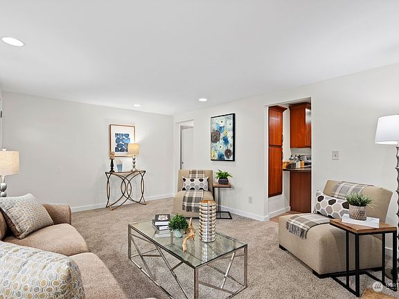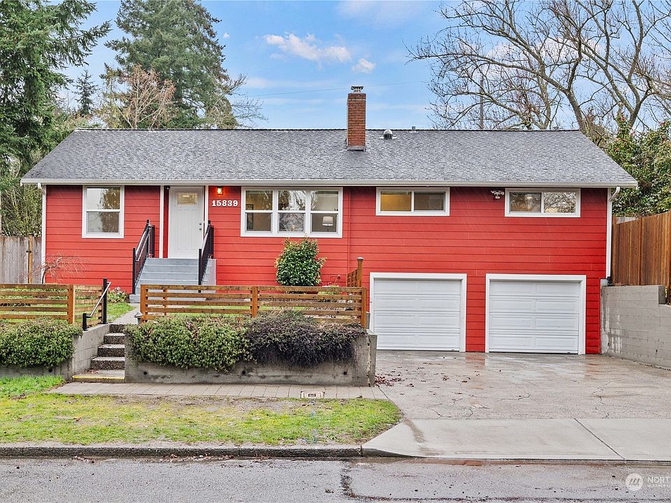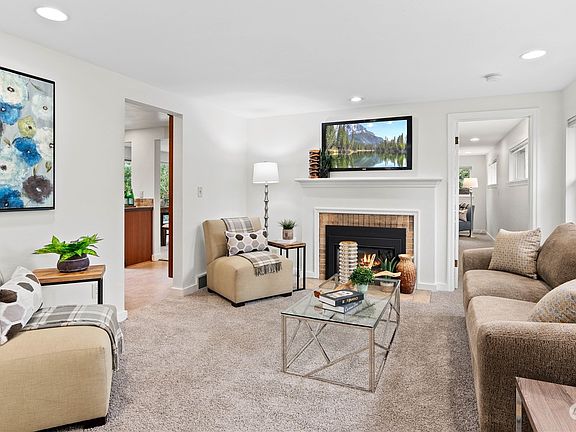 Very well maintained home completely updated in 2015 with new kitchen and bathrooms featuring Cherry cabinets with soft close drawers & doors. Stainless steel appliances including new range & microwave, new carpeting, raised panel doors, gas log fireplace, freshly painted interior, convenient family/dining room off the kitchen, large primary suite with bathroom, raised panel doors, can ceiling lighting, spacious showers in the bathrooms, newer double pane windows, spacious composite deck overlooking private fenced backyard, oversized 2 car attached garage with plenty of space for shop and storage, new garage door opener, low maintenance cement plank siding and superb neighborhood near coming Shoreline Light Rail Station and many parks.