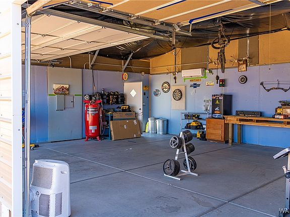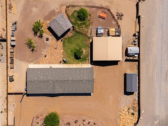 Welcome to this one-of-a-kind property nestled on a spacious half-acre corner lot. The pride of ownership is evident throughout, from the thoughtful layout to the attention to detail. This property offers the perfect blend of rustic charm & modern amenities, with a Sedona-inspired feel that will make you feel right at home. Property Features spacious Interior with 4 bedrooms & 2 baths, this home offers over 2,000 square feet of living space, featuring an open floor plan that flows seamlessly from room to room, perfect for both family living & entertaining. Energy-Efficient Comfort: The 5-ton AC unit with heat pump ensures year-round comfort, keeping the home cool in the summer & warm during the colder months. Multiple access points, enjoy the convenience of a solar-powered automatic main entry gate, allowing for a secured entry & multiple drive-through options on the property. This property boasts abundant parking for all your water/desert toys & trailers with two RV electric hookups for your convenience. Detached 3 Car Garage: A true gem has 8 Ft Doors & is the perfect mancave. Complete with 2 mini split 1.5 Ton AC/Heat pumps, Insulation & Moisture Resistant/Fire Barrier Drywall. Compete with a 250V welding hookup making it ideal for any hobbyist or DIYer. Sheds & Extra Storage: Two additional sheds on the property provide plenty of space for storage, whether you're working on projects, storing tools, or simply need extra room. Chicken Coop: Embrace the farm life with a fully functional chicken coop. If you d like, the chickens can stay with the property, providing you with fresh eggs & a touch of rural charm. Desert Southwest Landscaping & Irrigation: The property features multiple mesquite shade trees, thriving desert landscaping, complete with an efficient irrigation system & beautifully designed above-ground planters to showcase your favorite plants. This property has the structure & space to accommodate gardening, ponds, or any personal adaptations you desire. Hand-Built Ramada: A stunning 20x22 hand-built ramada offers a tranquil outdoor space with electricity, perfect for relaxing, entertaining, or enjoying the breathtaking Sedona-inspired surroundings. Whether you're looking to settle into a serene "Ranch-esque" lifestyle or enjoy the versatility of a property with both rural charm & modern conveniences, this home is the perfect retreat.