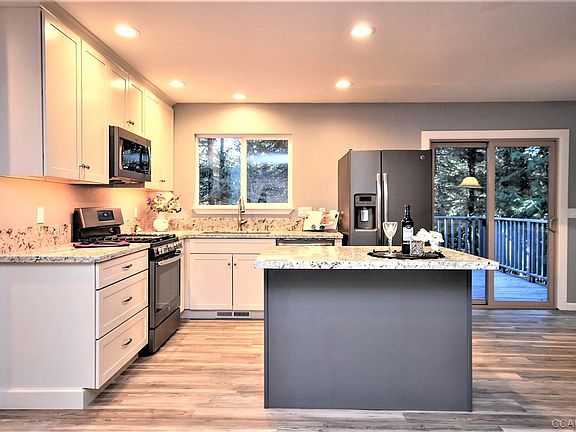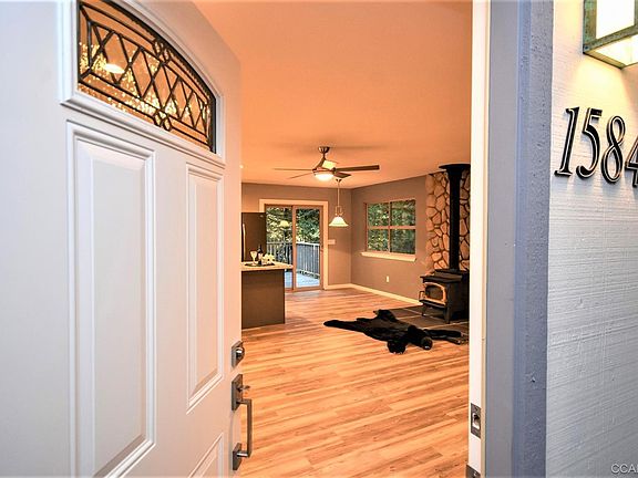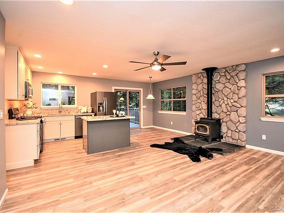 This single level home with a desirable open floor plan has been updated throughout with a touch of modern influence and high-end features including: GE Slate Appliances, granite counter tops, breakfast bar, laminate flooring, recessed lighting, soft close kitchen cabinets, tile flooring in both bathrooms, forced air gas heating plus wood stove with rock wall design. Large walk in shower stall in master with lighted medicine cabinet mirror. Convenient indoor laundry closet. Large composite rear deck for outdoor entertaining. The level oversized back yard with playhouse is on a street to street lot with sewer system (not septic). Circular driveway allows easy access and parking. Graveled side yard access for parking your boat or RV. Great location with a short walking distance to the town of Arnold for shopping, restaurants, 4th of July parade, outdoor concerts and arts & crafts festivals. Come to the mountains to unwind and renew where nature is the living picture in your daily life. Call for a private showing today...as this one won't last!