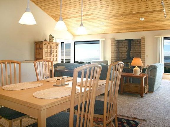 Sweeping ocean views from this two story, three bedroom, two and a half bath home. Private entry courtyard off shared private drive. Family room with wet bar downstairs. Large pantry off open kitchen. Large storage area/wine cellar downstairs. Best views at this price!