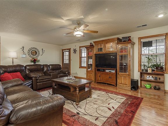 Beautifully landscaped home on over 1 acre! 4 car garage. Less than a mile to the lake. Spacious living room with gas log fireplace, wood flooring, and is open to the kitchen. Kitchen has plenty of cabinet space, nice island with room for bar seating. Large dining area. Large master bedroom and master bath with walk-in shower, long counter and mirror, and walk-in closet. Huge laundry room with tons of storage space, built-in ironing board, and double sided sink. Sit out and relax on the back deck and enjoy the scenery. Covered deck and open deck space. Garage is heated & cooled on both sides and can be used as a workshop space. Well water used for irrigation. This one won't last long! Come see!