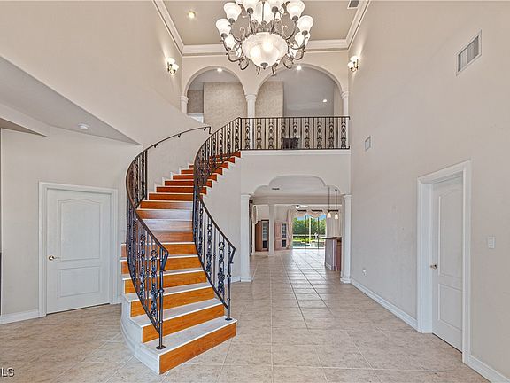 This is the home you have been waiting for in the much sought after Catalpa Cove gated boating community with beautiful Royal Palm tree lined streets. This enormous one owner custom-built home was thoughtfully designed and built by the Sellers with elegant touches throughout. Your boat slip is located behind the house on a direct access canal just minutes to open water for your SW Florida carefree boating and fishing enjoyment. The pool/lanai overlooks the canal and affords gorgeous sunset views and massive entertainment space with pool, spa and pool bath. From the oversized front porch enjoy your morning coffee and a view of the lake. The two-story entry is breathtaking with the curved staircase with wrought iron railing to the 2nd level, the entry also has a powder room and a closet craftily designed to add an elevator if needed. The 2nd level boasts 5 bedrooms, an office with access to the Primary bedroom which could be utilized as a nursery, 2 guest baths. The Primary bath has double sinks, bidet/toilet room, tile shower with multiple heads, jetted tub and 2 closets. Currently, one of the oversized bedrooms is being used as a theatre/media room. The 6th bedroom is a main floor ensuite bedroom and would be perfect for a nanny or mother-in-law suite with access to the pool/lanai. Working from home has never been more convenient with the main floor office with custom built cabinets and view of the lake. Fall in love with the kitchen layout that features self-cleaning double ovens, stainless elevated dishwasher, refrigerator, cook top and walk-in pantry. The formal dining room is spacious and overlooks the pool/lanai and is open to the great room. The game room/bar area would be perfect for family gatherings and parties, picture a pool table and game tables in the enormous room. The garage can accommodate 3 cars and has tall ceilings that would allow for a car lift or 2 for your car collection. Current configuration has the 3rd stall set up as a large shop with overhead decked storage. Also note, the community pickleball/tennis courts, playground and commercial ice machine in the Gazebo are included so you can fill your coolers for your day on the boat. TAKE ADVANTAGE OF THIS MASSIVE HOME with over 5000 SF of unparalleled living priced well below any home of its size on the water. Whether this property is designed for your full-time residence or vacation family compound, this home checks all the boxes and is waiting for your personal updates and decorative touches!