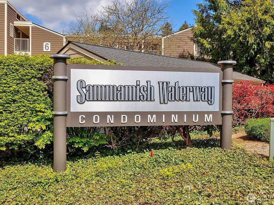 Sammamish Riverfront location! Beautifully updated condo in the Sammamish Waterway complex with new vinyl plank floors, new carpet, fresh paint, new lighting, new kitchen & bath granite counters. Wood burning fireplace. Spacious bedroom with mirrored closets. Kitchen boasts new refrigerator, new stove, new dishwasher, microwave. Den/2nd bedroom has new French doors + patio to enjoy the river view. New HWH. Gorgeous bath with new tile shower! Parking space #1 with no-step access to the home. Approx 8'X5' locked storage room. Bicycle storage. Strong HOA with good reserves! 3 licensed dogs/cats OK up to 75 lbs. Exterior updated in 2011 with Hardi Siding, composition roof, vinyl windows. Good access to 520 Bike Trail, Redmond & Marymoor Park!
