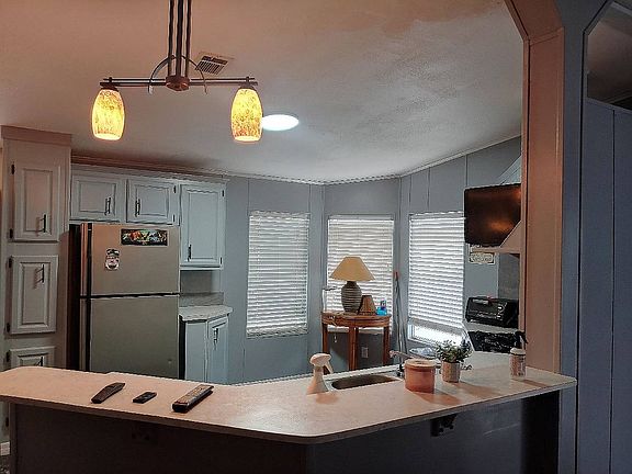 Do not drive, no problem! This home is in a park with the bus line outside the front entrance! Have kids? Then this is the park for you! Do not want homes behind you? This is it! Privacy fence lines back lots of the park! Want nice covered but an open front porch? This home has it! This 1144 SF home features a lot of nice updates already done for you! Freshly painted exterior with freshened up landscaping mulch and edgers, aluminum skirting, shed. Interior of the home features 2 bedrooms, 2 bathrooms, new plumbing, new electric fireplace with decorative tile surround! Kitchen has been given a nice, new countertop and breakfast bar gives it a very nice modern look! Guest bathroom has new vanity with tile surround, new toilet and flooring. Inside washer and dryer. Interior of home freshly painted as well! Large Master bedroom. Master bath has new double vanities, garden tub and shower. With a few minor touchups yet to do, this mostly furnished home is ready for you! Orange Lake MHP is centrally located in the town of Clermont conveniently located off SR 50 and close to shopping, restaurants, gas stations and more! Easy access to Orlando or Winter Garden! Not far from popular tourist attractions such as Disney World, Downtown Disney, Epcot Center, Sea World and more without the traffic congestion of that area! This wonderful all age community is perfect for everyone! Pet friendly! Bring your kids and fur babies and enjoy the affordable Florida lifestyle right here! Community has a pavilion, basketball, playground a a pool to relax and soak in those Florida rays! Monthly lot rent includes base rent, fire tax, pass thru taxes, trash and metered water and sewer that is billed in arrears by park.