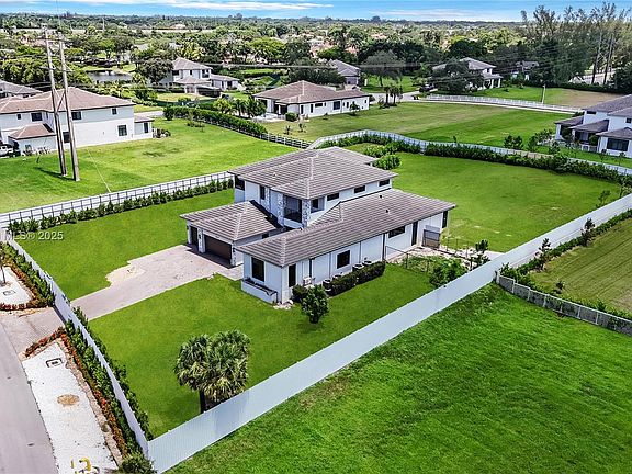 Welcome to this stunning Newer Built 2022 estate in the exclusive Circle S Estates, a private community of just 42 modern homes. Nestled on a 1-acre fully fenced lot, this two-story home offers 6 BD, 4.5 BA, and a separate in-law quarters. Inside, you're welcomed by soaring 30-ft volume ceilings, marble floors throughout, ultra-modern finishes, and abundant natural light. The primary suite is conveniently located on the 1st floor. The large backyard offers ample space to add a pool and summer kitchen. Designed for both luxury and privacy, the home also features tinted impact windows and a high-resolution camera system. This is a rare opportunity to own in one of the most sought-after communities. Schedule your showing today! Also available for lease!
