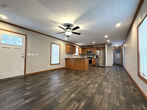 This stunning three-bedroom, two-bathroom home offers modern comfort and convenience in a welcoming community. With 1,056 square feet of thoughtfully designed living space, this home is perfect for those seeking style and functionality. Step inside to an open floor plan filled with natural light, creating a bright and inviting atmosphere. The spacious kitchen is perfect for cooking and entertaining, featuring energy-efficient appliances and plenty of counter space. The master suite includes a walk-in closet and a private bathroom, providing a peaceful retreat. Additional highlights include central air, washer and dryer hookups, and a storage shed for extra space. Nestled in River's Edge, a vibrant community in Clinton Township, Michigan, residents enjoy an array of first-class amenities. Indoor and outdoor basketball courts, swimming pools, an activity center, barbecue areas, pavilions, and playgrounds offer something for everyone. The pet-friendly neighborhood also features well-lit streets and hassle-free snow removal in common areas. Don't miss this opportunity to make this beautiful home yours. Call today to schedule a tour. Some photos have been virtually staged.