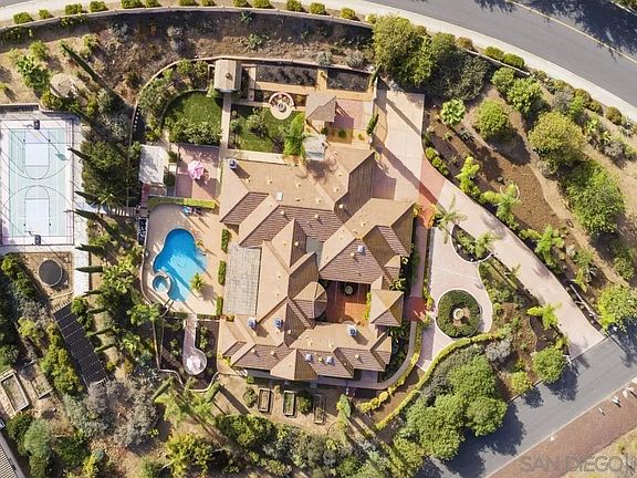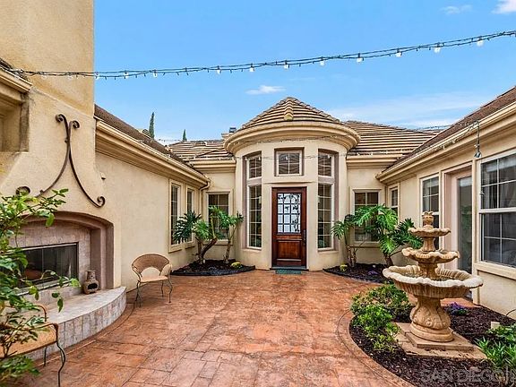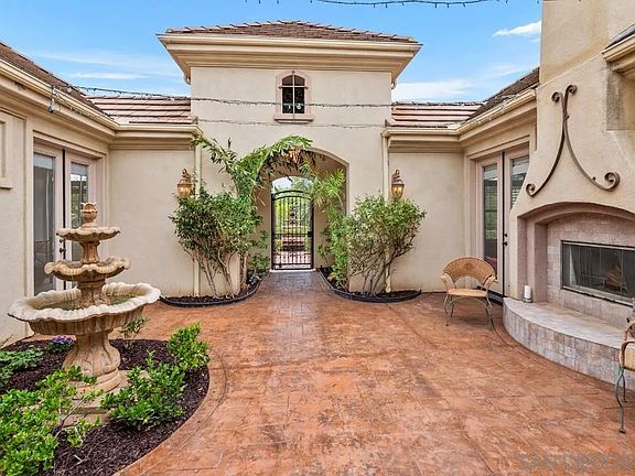 Executive single level home situated on a large corner lot in the desirable community of Serena of Lake Poway. This is a distinctive 5 bedroom & 5.5 bath home. (EACH BEDROOM IS AN ENSUITE) Enter through the gated courtyard w/ fireplace & fountain to an open, flowing floorplan. Soaring ceilings, spacious gourmet kitchen w/ Viking Appliances, dbl ovens, built-in desk, butler's pantry w/ wine fridge, & large island w/ breakfast bar that opens to a large great room w/ views overlooking the pool and lush gardens.