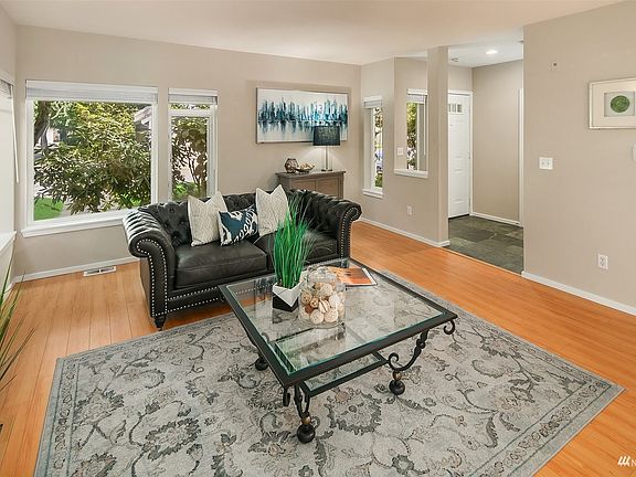 Prime location is the key in sought-after Rivertrail community! This home lives large with a great room design. The main floor features living room, dining room and kitchen with eating bar. Great storage located under the stairs and ½ bath complete this level. Upper level with 3 bedrooms. Primary bedroom has vaulted ceilings, double tiled vanities and walk-in closet. Full bath and laundry on upper level as well. Freshly painted with new carpet and vinyl plank flooring! A/C and beautiful windows blinds. Private fenced side yard. Attached 2 car garage. Located in downtown Redmond with a short walk to shopping, Sammamish Trail, restaurants, theatre & bus line. Quick access to Redmond Town Center, Microsoft and Hwy 520. Lake Washington schools