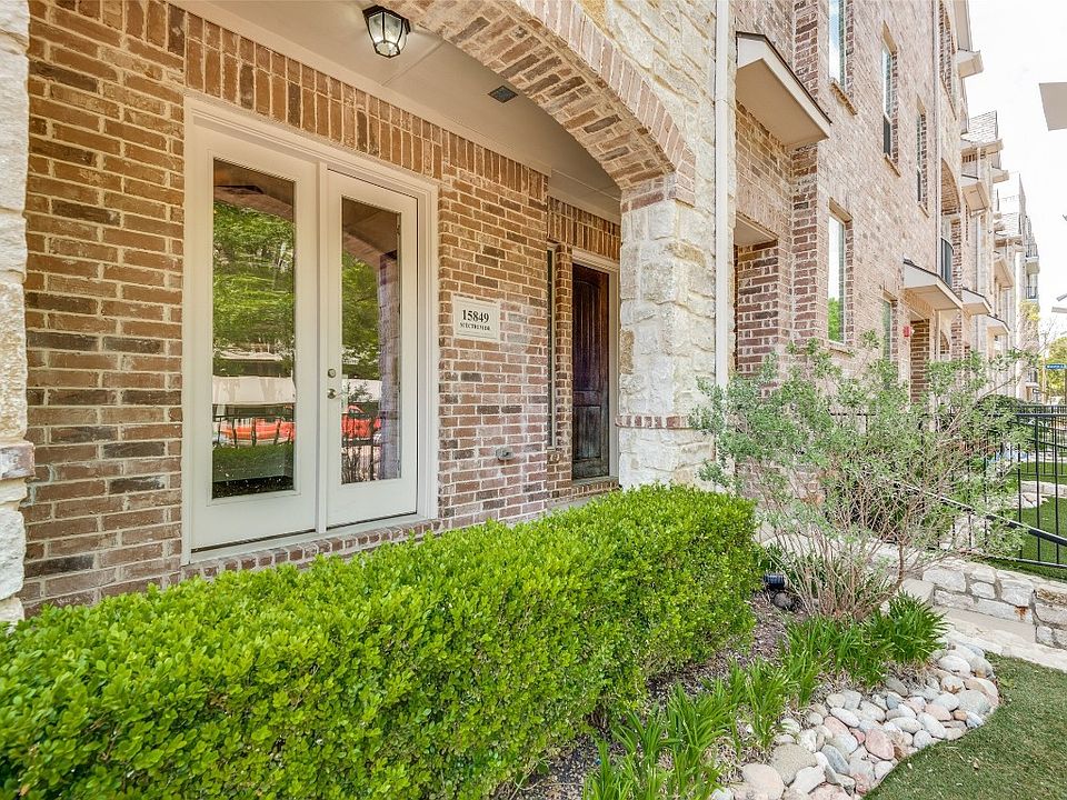 WELCOME HOME TO 15849 Spectrum Drive in the fabulous Addison Circle area. This townhome boasts of upgrades to include plantation shutters, hand scraped hardwood flooring, beautiful ornamental iron railings on staircase. On the first floor you will love the option of use for office, gym or bedroom with full bath, walk in closet and french doors to the covered front porch. As you approach the second floor you are greeted with an open floor plan living, dining and kitchen area with patio access off the kitchen area, perfect for entertaining with walk in bar area and abundant storage. The kitchen area has stainless appliances, Carrara Marble countertops and stunning cabinets. Primary Bedroom rests on the third level with dual vanities, frameless shower AND oversized walk in closet. The secondary bedroom on the third floor has full bath, beautiful finish out in bath, plantation shutters, and large bedroom closet. Don't miss out on this beauty!