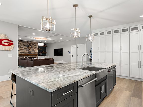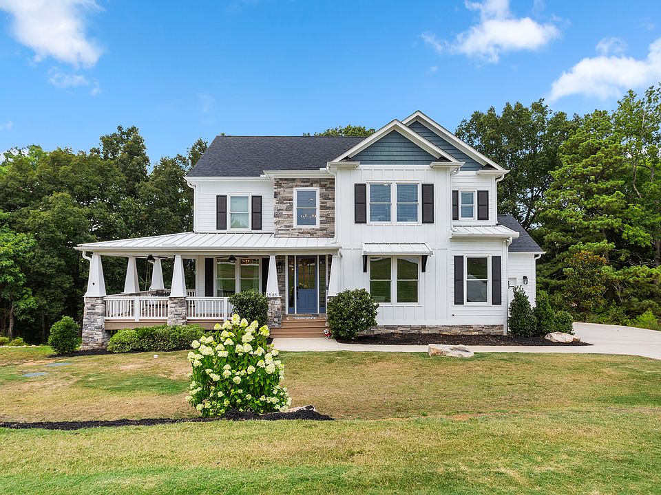 This home won Season 2 of HGTV's Rock the Block in 2021 as part of a 4 luxury home community. This beautiful home boasting with character was designed by top designers, Brian and Mika Klienschmidt, specifically for living with maximum functionality and impeccable style. This farmhouse-meets-coastal design will knock your socks off, and the SMART interactive features are just the icing on the cake! The southern front porch of your dreams will welcome you home, as you walk into a stately two-story foyer. You'll immediately notice the gorgeous wall to wall waterproof KarnDean wide plank floors. The Cook's kitchen will take your breathe away with it's stunning seamless jumbo island, two-tone cabinets and full height backsplash. You'll love the extensive storage in cabinets galore, two dishwashers, HUGE hidden pantry with secret door to more storage, Kitchen-aid appliance suite, wine fridge, and many more luxurious features. The upstairs laundry room is decked out with more storage than you could need, a convenient folding counter and it connects to the owners bedroom closet. Owners suite is large with a built-in oversized custom closet system. Smart assistant mirrors featured in the master bathroom, giant shower with ceiling mounted rainfall shower heads, separate soaking tub, private toilet room (with TV mounted) and gorgeous tile design. Upstairs has 4 bedrooms and 2 full baths. Main level offers a bedroom/office and a half bath with a large living space. Outside deck on main level features sleek glass panels and an impressive interactive retractable smart pergola by StruXure. Third car garage is being used as an exercise room with an additional roll up garage door with a view and allows great cross breeze. Basement is fully finished and ready to entertain with a custom two-lane Mini-Bowling area with integrated scoring & projector System (by US Bowling CORP), plenty of seating room, a large bedroom and bathroom with floor to ceiling tile. All of this and a little more than an acre, this house is a true gem. The owners hearts are broken, but they must relocate, this is your opportunity to own your dream home!