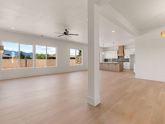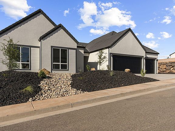 Welcome to your brand-new home by Holmes Homes, a trusted 5-generation builder. Nestled in Washington Fields on a ¼ acre lot with a 40-foot pathway behind for added privacy, this home has beautiful Pine Valley views. The single-level plan features 10' ceilings, 4 bedrooms, 2.5 baths, offering versatile living. The open kitchen with large island, and walk-in pantry flows into the great room with fireplace—perfect for gatherings. Retreat to the master suite with walk-in closet, soaking tub, shower, and dual vanities. All secondary bedrooms have walk-in closets. A 3-car garage, laundry room, powder bath, and patio complete this modern, functional design. Large back yard to finish how you choose, fit a pool or private retreat. This home is move-in ready.