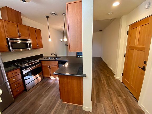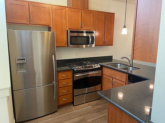 Stainless steel appliances, granite countertops, and luxury vinyl flooring make this home feel like new. Quality details including wood frame Pella windows and patio door, custom light fixtures, four panel fir interior doors, GE profile gas range and more! Private fully fenced patio.
