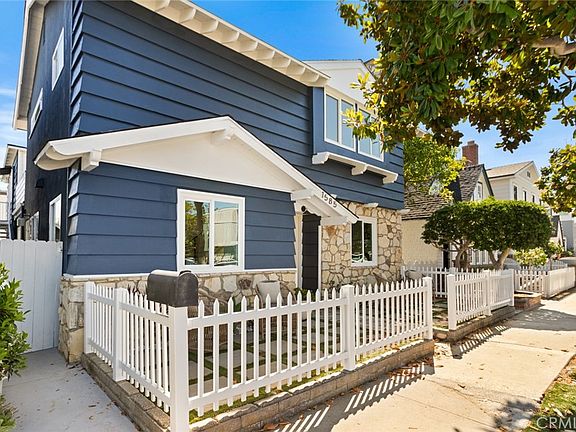 Nestled in the heart of Newport Beach’s coveted Balboa Peninsula, just two blocks from beaches along the Pacific Ocean and nearly as close to Newport Bay, this exceptionally upgraded and remodeled home is destined to enhance your lifestyle. Stroll to fashionable cafés, restaurants, shops and galleries, or relax at home on your inviting front patio, complete with a classic white picket fence. Beyond the Dutch entry door, a reimagined first level reveals open-concept style with a seamless dining room, living room and kitchen. A custom mantlepiece and white stone hearth grace a corner fireplace, while the new kitchen opens to the dining room with a passthrough bar and hosts Shaker cabinetry, stainless appliances, quartz countertops and a door to the side yard. Elegant craftsmanship is revealed through the inclusion of crown molding, wide white oak-inspired luxury vinyl plank flooring, designer lighting fixtures and custom wall treatments. Approximately 2,630 square feet, the four-bedroom, three-bath residence continues indoor/outdoor living on the second level, where a private deck is accessed by a versatile den, the primary suite and a secondary bedroom with separate entrance, making it perfect for guests. A spiral staircase leads from the main deck to a sunny rooftop deck with panoramic city-light views, and both decks are finished with slotted wood flooring. The primary suite showcases a sitting area, wood-finished accent wall, a romantic fireplace with floating hearth, a spacious dressing area with mirrored wardrobes, and a new custom bath with rain shower, freestanding tub and dual sinks. Further enrichments are led by recessed LED lighting, upgraded windows and sliding-glass doors that bathe interior spaces in natural light, a fresh white color palette, and an attached two-car garage. Close to The Wedge, a world-renowned surf spot, and minutes from Fashion Island, Balboa’s pier and Fun Zone, scenic parks, golf courses and luxury resorts, this turnkey home presents the ultimate mix of style, functionality and proximity to the water.