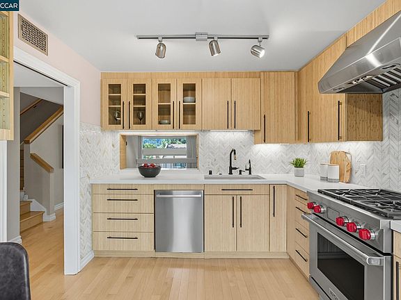 Discover the perfect blend of comfort, style, and convenience in this beautifully maintained 3-bedroom, 2.5-bath townhome in the heart of Moraga. Thoughtful updates, inviting living spaces, and two private patios make it ideal for everyday living and entertaining. The main level features an airy layout with a remodeled kitchen offering modern finishes, high-end appliances, and ample cabinet space. A sliding door opens to a sunny patio with garden space—perfect for outdoor dining or morning coffee. The dining room flows into the living room, where tall ceilings, large windows, and a cozy fireplace create a warm, open feel. A second patio with storage offers another outdoor retreat. A remodeled half bath completes this level. Upstairs, the primary suite boasts ample closets, peaceful views, and a serene ensuite bath. Two additional bedrooms and a sleek remodeled hall bath provide versatile options for guests, office, or hobby space. The lower level includes direct access to a spacious two-car garage and large utility room. Enjoy a prime location with incredible proximity Moraga Farmers’ Market, Moraga Commons Park, local trails, and Canyon Club brewery. Move-in ready, this townhome offers the best of Moraga living.