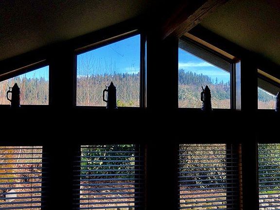 Accepted Offer with Contingencies. Charming home with beamed vaulted ceiling and wall of windows open to private outdoor space and expansive tree/butte view! So many lovely features of this well maintained home include forced air, cozy wood stove insert, bright spacious floor plan, den/office and much more! Outside is hot tub room off the master, lg gated RV pad w elec, "lifetime" metal tile roof, extra storage/shelving in garage, and a deck with canopy to relax and entertain! You'll enjoy the year round comfort. Don't miss out on this one!