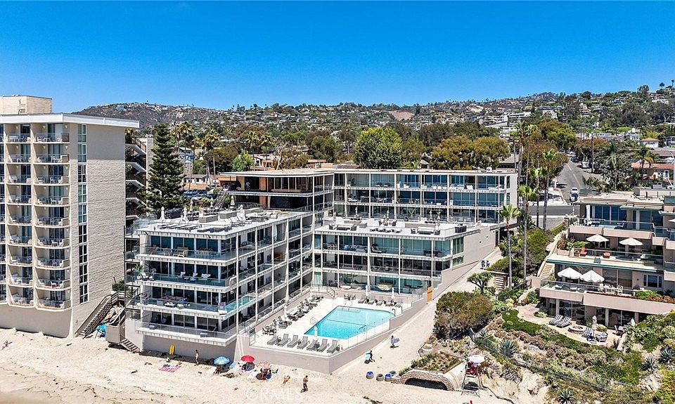 Experience resort-style coastal living with this rarely-available, top corner end unit condominium. Situated in the ocean front Laguna Sands complex, which has recently completed a multi-million renovation providing truly upscale ocean front living. This exceptional residence offers spectacular ocean and whitewater views from a private ocean-view deck where you will experience the sights and soothing sounds of the shore below. Open-concept layout seamlessly connects the living, dining, and kitchen areas. Granite kitchen open to the views with bar, stainless steel appliances and custom cabinetry. A spacious layout overall with 3 bedrooms and 2 baths. The sizeable master suite enjoys an ocean view, multiple closet systems including a walk-in and a dual vanity bathroom with stone shower. Secondary bedrooms have closet storage, a hallway bathroom with artistic ceramic bowl vanities and stone shower. In unit laundry with newer stackable washer/dryer. This private, highly secure gated building affords not only direct access to the beach but also an ocean front pool with new decking. Two large community deck terrace areas have tremendous ocean front views and have been completely renovated, including lounge furnishings, barbecues and fire pits. Ease of living with elevator access to all levels. 2 car parking in the gated subterranean garage, large dedicated storage closet, storage cabinets and bike/kayak community storage. HOA dues include most utilities excepting electricity, cable/internet. Prime location next door to the iconic, renovated Surf and Sand Resort. In the heart of the HIP district just yards to the best restaurants, shops and services. Excellent accessibility to areas of town with a trolley stop right outside the building and just minutes to downtown, your Laguna lifestyle awaits here on the ocean front.