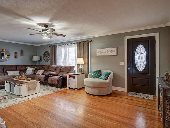 Fantastic LOCATION and UPDATED! Easy living in this single level home with a BEAUTIFUL Kitchen update featuring new cabinets, quartz countertops, built in pantry with barn door, hidden microwave, all appliances included, fresh paint, custom built shiplap range hood, shiplap in dining room. Living room open to the new kitchen. New laundry room with built in shelving. Hardwood flooring throughout. Tile in bathrooms. Primary bath has new cabinetry and granite tops. New ductwork and HVAC 2024. Outside, features an oversized covered front deck. White vinyl privacy fence encloses the backyard. Stick built storage building in backyard. 2 Car drive in garage with new automatic opener. Walk up-stairs to attic from garage. Located conveniently in the center of Kingsport for access to schools, shopping, restaurants and Green Belt. All information deemed accurate; buyer/buyer's agent responsible to verify all information.