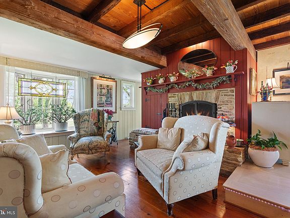 Step into a slice of timeless Virginia countryside where historic charm meets tasteful modern living. Nestled on over 7 acres of rolling, tree-lined land, this storybook farmhouse is truly one of a kind—a rare and remarkable find in Prince William County. Main home has 2 beds and 2.5 baths and includes a detached 500 sq ft studio space with a luxury bath. This masterpiece has been lovingly maintained and thoughtfully updated, blending centuries-old character with today’s comforts. From the moment you arrive, you're greeted with serene mountain views, a peaceful natural setting, and an undeniable sense of home. Inside, reclaimed heart pine floors whisper stories of the past beneath your feet, while vaulted ceilings in the dining and keeping room create an airy, dramatic space anchored by 100+ year- old hand-hewn barn beams. At the heart of the home, the original stone fireplace—now with a cozy convenient gas insert—invites evenings curled up with a book or sharing stories with loved ones. The main-level primary suite offers ultimate convenience with an en-suite bath and restful views of the surrounding landscape. The sunroom is a showstopper—a bright, tranquil space to watch the deer wander by, enjoy morning coffee, or simply breathe. The chef’s kitchen is an absolute dream, meticulously designed with travertine and granite countertops, custom reclaimed wormy chestnut cabinetry, and all the right zones for prepping, cooking, baking, and clean-up. Three appliance garages in the pantry section, keep counters clear. A Viking cooktop with downdraft, a convection/classic/microwave wall oven combo, SubZero refrigerator/freezer/icemaker, and double Kohler sink make this a functional and elegant culinary hub. Don’t miss the separate prep zone with its own Kohler sink and the delightful eat-in area by the bay window—the perfect nook for slow Sunday mornings. Upstairs, the loft-style second bedroom offers a private retreat with its cedar walk-in closet and vintage clawfoot tub, adding a romantic touch to this storybook space. But the charm doesn't stop there—step outside to your private wonderland. Stone patios, a double cedar deck, a peaceful two-tier fish pond, and a handcrafted arbor and trellis create the ultimate outdoor sanctuary. Whether you're lounging in the hammock, tending to your garden (complete with six hose bibs), or simply enjoying the hummingbirds and wildlife, this property offers a deep connection to nature and a slower pace of life. A designated Audobon at Home property! A detached two-car garage comes with an incredible 500 sq ft studio above with Pergo floors—complete with a private entrance, deck, kitchenette, and a luxury full bath featuring a bubble tub, towel warmer, granite counters, fun black and white tile floor and enamel sink. The studio’s ductless LG system keeps it comfortable year-round, making it perfect for guests, art, work, or a quiet escape. Workroom attached to garage with internal and external access. Complete with built-in Kraus sink, wheeled hand-made work bench and loads of storage space. It features hand-made double barn doors and opens to a covered stone porch. Highlights: Two year-old asphalt shingle roof with 50 year warranty. A newly painted metal roof and red trim sets of the charm... New water heater, red cedar double deck off the back of the garage offers stunning views. New stone retaining wall with travertine cap on south side of home, makes a great seating area when company comes to call. New large capacity Speed Queen washer. All this privacy and beauty, tucked away at the base of the Bull Run Mountain, (the start to the Blue Ridge Mountains), yet just minutes from the best of Haymarket, Warrenton, Leesburg and Middleburg—restaurants, parks, groceries, shopping and commuter routes. This is rural elegance at its finest—a once-in-a-lifetime home for those who value character, tranquility, and excellent craftsmanship.