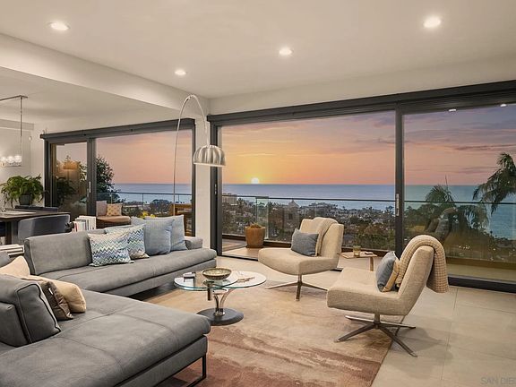 Set high in the prestigious Country Club neighborhood, this gorgeous estate captures sweeping ocean vistas and unforgettable sunsets. Surrounded by the natural beauty of the hills, the home offers a rare blend of privacy, elegance, and breathtaking scenery. Ideally located just minutes from world-class dining and shopping, the property also provides walkable access to the Village, Scripps Pier, and the scenic La Jolla Natural Park trails leading up to Mt. Soledad. Thoughtfully designed over three levels with entry on the main living floor, the residence lives more like a two-story, combining ease of everyday living with the sophistication of a coastal retreat.