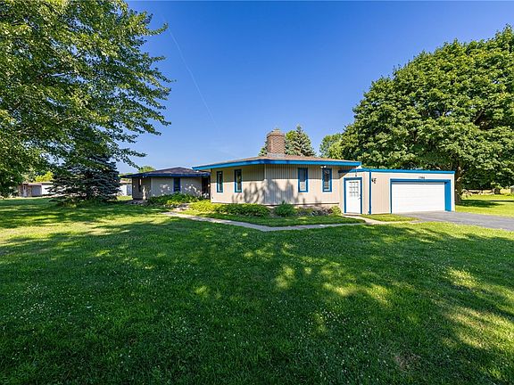 A real one-of-a-kind piece of ART! 4 bd 2.5 bath ranch 2304’ sq ft, designed by renowned Rochester architect Bart Valvano! There’s no home quite like this one. Nearly an acre of a fully fenced lot that connects to Rothuss Park! Primary bedroom with en suite half bath. Eat-in kitchen with newer appliances and a convenient 1st floor laundry area with 2nd sink. A spacious living room / dining area connects to the kitchen, with a sliding glass door leading to the deck, the perfect entertaining space! Cozy family room with a wood burning fireplace connects to the 4th bedroom or office with a full bath. Large 2 car garage with heated workshop area, additional storage space. 710’ sq ft, fully insulated stick built outbuilding/garage with 100amp service, numerous 120v and 240v outlets, and air compressor with compressed air plumbing. 400 amp electrical service to the house, newer boiler and hwt. Short drive to golf courses, Wegmans, and nature trails! WEBSTER SCHOOLS!
