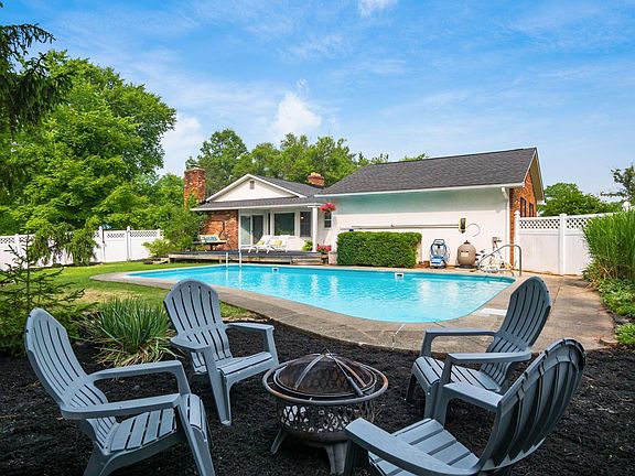 Fabulous brick ranch on 1.3 acres! Park-like setting w/ trails in wooded area. Gorgeous 17 X 34 in-ground pool w/ vinyl privacy fence. Tons of counter/cabinet space in Kitchen w/ new flrg & SS appliances. Dinette Area w/ Bay Window. Brick gas FP in Family Rm & sliding door w/ built-in blinds leads to deck & pool. 2nd gas FP highlights the Living Rm w/ a beautiful view of back yard. Primary Bdrm offers walk-in closet + 2 other closets. Primary Bath w/ jetted tub, walk-in shower, separate vanities w/ corion counters, tile flrg + oversized window overlooking the private back yard. 1st Flr Laundry/Mudroom w/ closet & entry to garage & LL. Extensive landscaping freshly mulched. New roof & radon system 2021. 3rd Bdrm is being used as an Office - See attached Property Features