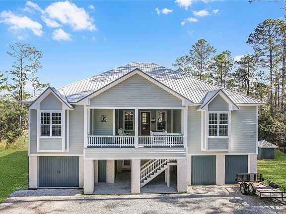 ON OVER 4 ACRES OF LAND IN THE REFUGE AT BELVEDERE ISLAND PLANTATION.....Welcome to 1586 Refuge Way! You will be greeted by a private wooded drive winding back to the meticulously cared for home that is built up on piers giving an elevation for panoramic views of the marsh and glimpses of Saint Catherine's Island. Inside on the main level is an open-concept kitchen and living room with a gas range for cooking and a gas fireplace for keeping warm. Heart pine floors are through out the entire home. The primary bedroom will be on one side, while 2 other bedrooms, with a shared bathroom are on the opposite side of the house, providing privacy. Also, you'll find a separate half bath for your guest. The bottom level has 2 bays for parking and storage for tools/lawn equipment and fishing tackle, bikes, side-by-side to name a few examples! The BONUS, is the extra room, wedged in between the garages on the first floor, that has a mini split for heating and cooling, tongue and groove ceiling, ship lap walls and LVP flooring -ideal for an office, gym or your personal retreat! HOME HIGHLIGHTS: Metal roof, James Hardie Board siding, tabby stucco finish on the piers, personal deep water well, smooth coat ceilings on the inside. Belvedere Island Plantation is a gated community spanning over 400 ACRES of land, offering amenities to its owners a golf cart ride away! To include: a pool, tennis court, deep water dock and hoist, a Clubhouse with overnight stay option for guest, Boat/RV storage yard, Equestrian Center, walking paths and ponds. I encourage YOU to see for yourself! Schedule your showing today.