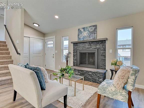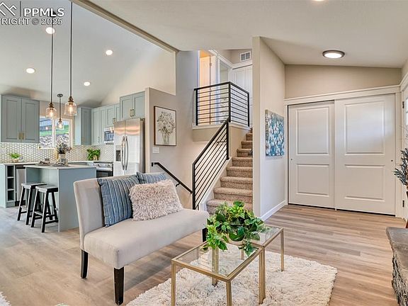 Completely reimagined and fully renovated, this stunning townhome in the heart of Rockrimmon offers a rare opportunity to own a brand-new interior in a highly sought-after established community. Located within the desirable D-11 school district and tucked into the peaceful Territory North neighborhood, this 2-bedroom, 1-bath residence has been meticulously transformed with top-to-bottom updates, showcasing modern finishes, clean lines, and elevated design at every turn. Every inch of this home is new—flooring, cabinetry, countertops, appliances, lighting, paint, doors, trim, fixtures, and hardware—delivering a true turnkey experience. The kitchen is a designer’s dream, featuring soft-close shaker cabinets, quartz countertops, stylish backsplash tile, and stainless steel appliances, all centered around an eat-in island with pendant lighting. The adjacent dining area opens to a private back deck, blending indoor and outdoor living. The vaulted ceilings and luxury vinyl plank flooring create a spacious, light-filled living room anchored by a dramatic floor-to-ceiling stone fireplace. The bathroom feels spa-like with a new double vanity, quartz counters, brushed nickel finishes, and a custom hex-tile floor. Thoughtfully designed with comfort and functionality in mind, this home also includes an attached 1-car garage, updated systems, and low-maintenance living. HOA dues cover heat, exterior maintenance, lawn care, management, snow removal, and more. With convenient access to Ute Valley Park, I-25, shopping, and dining, this fully remodeled townhome is the perfect blend of modern style and Colorado convenience—ideal for first-time buyers, downsizers, or investors seeking a move-in-ready gem.