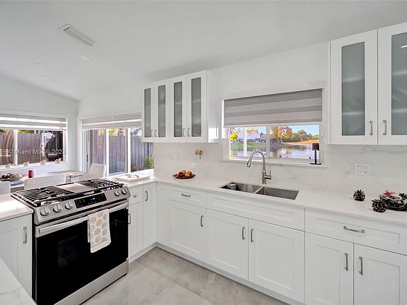 Accepting backup offers! Lakefront Single Family Home!!! Fully renovated with high-quality materials where no expenses were spared. This stunning and spacious 1 Story Home features: 3 Bedrooms 2 Bathrooms. Open layout with beautiful, high ceilings, plenty of natural light, Porcelain floors, the kitchen overlooks the lake. custom new cabinets, brand new stainless-steel appliances, Quartz countertops in the kitchen, outdoor kitchen and baths, custom- made closets. New shades in all windows. The fenced backyard offers a spacious deck with an outside Kitchen for those who love to entertain, perfect for parties or enjoying the sunset with an unobstructed view of the lake. Roof and A/C (2 Years) Direct access to the water. 2 covered garages. Excellent Located