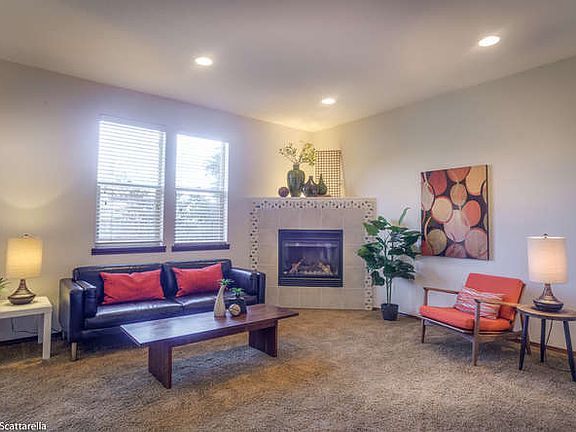 BEAUTIFUL 4 bed home! Gourmet Kitchen with slab granite & back splash, SS appl, fridge stays. Gas fireplace, sliding doors to fenced backyard w/ pavers and access to green area & pathway. Wood floors, walking closet, full bath & vaulted ceiling in master bed. Good size beds.Garage looks like kids playroom, fine cabinetry(removable for+space)& finished floors. 4 car extraparking near to street.