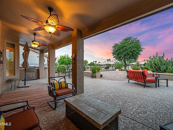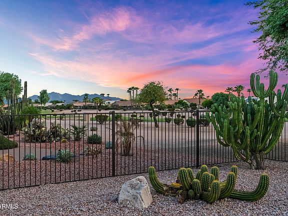 BEAUTIFUL MOUNTAIN & GOLF COURSE VIEWS...AND THE BEST SUNSET VIEWS EVER! Amazing Oversized Backyard Just Right for a Pool & Spa....with Built-In Gas Barbecue, Outdoor Adobe Fireplace, & Large Extended Patio Just Right for Entertaining! This House has All the Bells & Whistles...Including OWNED SOLAR! Walk In & be thrilled to see all the Neutral Tones throughout making you Feel right at Home....Remodeled Kitchen with Stainless Appliances, Granite Countertops, Large Oversized Square Granite Island, Gas Stove, & Neutral Tone Tile Backsplash! Many of the Windows Replaced in 2020 with Anderson Windows! Master Bath Remodeled with Custom Porcelain Tile Shower, Tile Flooring, & Granite Vanity Sink! Guest Bath Remodeled with New Vanity with Granite Countertop! Upgraded Outdoor Irrigation System, ++ Newer Paver Driveway & Walk-Ways, Newer Garage Cabinets, Epoxy Garage Floor, Water Softener, R/O System, & Large Utility Sink in Garage! Rental Commitments until April 2026 so Purchase & Scoop up the Rental Income...This is a Must Property to See...Do Not Just Drive-By...Turn Key with a House Full of Beautiful Furniture...All Located in the Scottsdale of the West....PebbleCreek Golf/Pickleball Community offering 3-18 Hole Golf Courses, 40+ Pickleball Courts, 3 Outdoor Pools, 1 Indoor Pool, Theatre, Art Center, Over 100 Clubs and So Much More!
