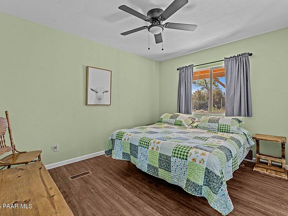 Welcome to 15862 S Rolling Ridge! Situated on just over a quarter-acre lot directly across from BLM land, this completely updated and remodeled manufactured home offers breathtaking mountain views and a lifestyle full of community and convenience. Featuring 2 bedrooms and 1 bath, the home boasts a large, modern kitchen, an expanded living room from a thoughtful add-on, and covered patios on both sides--perfect for relaxing or entertaining. All appliances are new, and all furniture conveys with the home.The property includes a detached garage with an oil changing pit, a cellar, a carport on the north side, a tool shed, and a storage shed, providing plenty of space for vehicles and hobbies. Additionally, there are two RV parking spots--one on the upper driveway and one on the lower--each equipped with electric, water, and sewer hookups, ideal for visiting friends or family.This home is part of a vibrant and welcoming community. Residents enjoy the town's community center daily, with activities including Bingo nights, craft fairs, and breakfasts and dinners at least twice a month. There's also a library, hardware store, restaurants, a small motel, two dollar stores, and quick access to both Phoenix and Prescott. The weather here is about 10-12 degrees cooler than the valley, making it a comfortable retreat.Nearby attractions include Arcosanti, the unique bell-making commune that offers breakfast, lunch, and fascinating tours. The town has its own fire department, a beautiful community park with a dog park, and 24-hour maintenance services. Music lovers will appreciate the town's rich history of community music groups, potluck dinners, and weekly practices hosted by residents--initiatives started by the original owner of this home. The yard itself has charming stonework and unique landscaping, crafted with care by the original owner.This property combines comfort, convenience, and a strong sense of community, making it the perfect place to enjoy both peaceful mountain living and an active social life.
