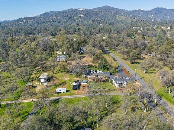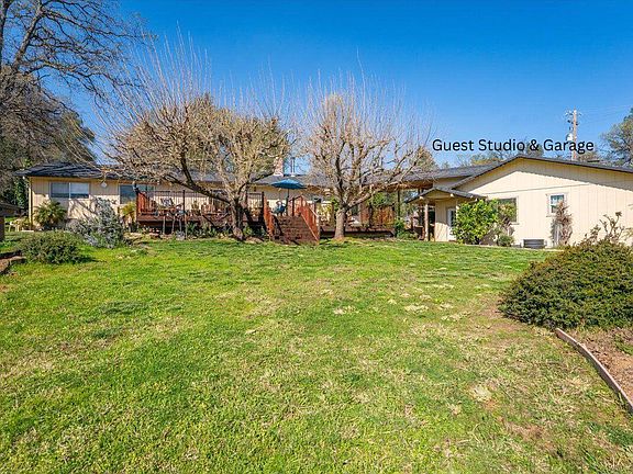 Beautiful horse property in West Redding & Grant School District! Ride your horses down the trails and enjoy the scenic land surrounding this country home with approximately 2,268sqft of living space; 1,856sf main house and 412sqft studio/ADU income potential. This home sits on approx. 2 acres with a welcoming courtyard and breezeway separating the main house from the cottage-style guest studio.