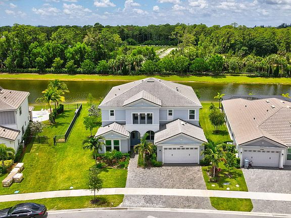 Elevate your lifestyle in this exquisite Kestrel Grand, offering 4,110 sq ft under air and 5,535 total. A stately double-door entry welcomes you into a soaring 20-ft foyer with an elegant sweeping staircase. This impressive 2-story residence features 6 bedrooms, 4.5 baths, impact arched windows, and refined natural light throughout. Enjoy serene lake views with no rear neighbors, a screened balcony, and an inviting open porch. Located in Westlake with world-class amenities: resort lagoon pool, adventure park, splash pad, basketball courts, playgrounds, and picnic areas. Minutes to PBI, Turnpike, beaches, and Wellington equestrian venues. OVERSIZED PREMIUM LOT WITH NO REAR NEIGHBORS AND BREATHTAKING LAKE VIEW!