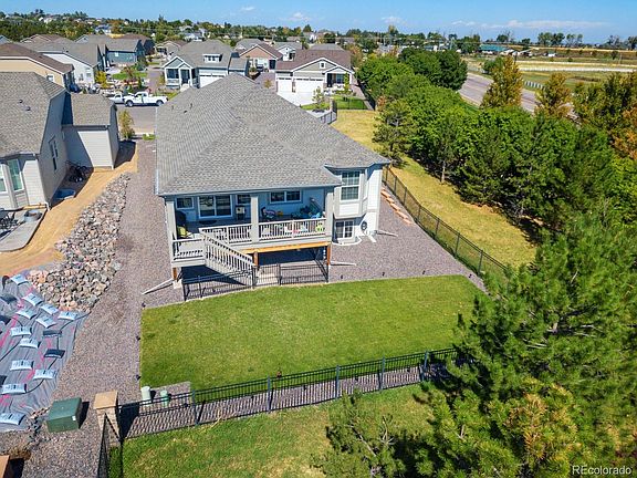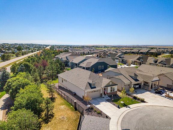 3 Car Garage Cul-de-sac home in Heritage Todd Creek 55 plus Active Community. Only 1 neighbor to the west and open space to the east with views of mature trees surrounding 2 corners of the home. 4576 Sq Ft including basement. Tandem garage fits 3 cars with room to spare. Main level Ranch open floor plan with 3 bedrooms and office (or 4th guest room) on the main level. This home boasts luxury cabinets, quartz countertops, grey engineered Lakewood plank flooring, oversized covered entertaining deck and unfinished basement perfect for storage or future added value expansion. Master bedroom suite has views of mature trees from bay windows, coffered ceiling with ceiling fan, step in shower with shower bench, dual vanity, huge walk-in closet. The 2 secondary bedrooms are large enough for queen size beds or craft room tables and have a full bathroom with soak tub to enjoy. Study office features glass French doors. Dining area is large enough for 8-10 people full size seating table and is adjacent to the gourmet kitchen with island and breakfast bar seating. Top of the line kitchen with Merillat cabinets, large walk-in pantry, chef delight gas range and stainless-steel appliances. Oversized covered deck enjoys views of mature trees and has stairs leading to a custom fenced dog run for your family pets. Fenced dog run was strategically added to allow pets to roam under the deck over the decorative rock and not over the grass lawn. Smart mud room off the garage door entrance to the home to leave your shoes and the laundry room features a whole house fan. Smart tech home includes Ring doorbell security and My Q garage remote access as well as well as capabilities to connect to the thermostat and water and other safety alerts. Living with resort amenities. Gorgeous home! Gated community with amazing 18-hole Arthur Hills designed golf course, community center, tennis/pickle ball courts, swimming pool, fine dining, fitness center, patio seating, year-round social activities.