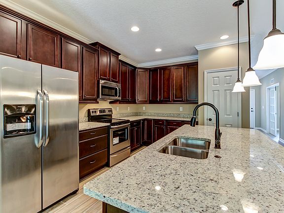 New Construction Spec Home completed and ready for you. This home features 4 bedrooms and 2 full bathrooms, with a flex room. Easily use the flex room as an office, bedroom, or den as needed. The living areas are open and fully tiled in ceramic wood look planks. Tall 42in Espresso cabinets set off the beautiful kitchen with stainless appliances. The open floor plan looks out on to a covered patio and preserve. Easy to see and easy to show. Comes with Builder Warranty