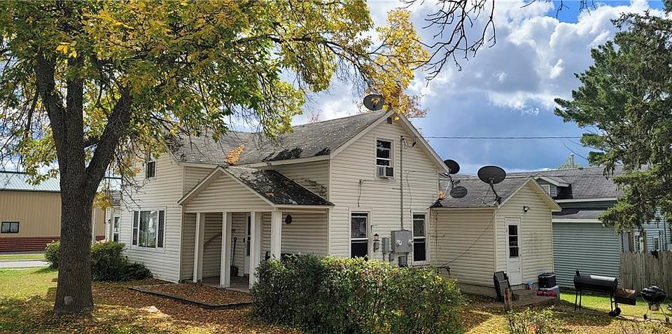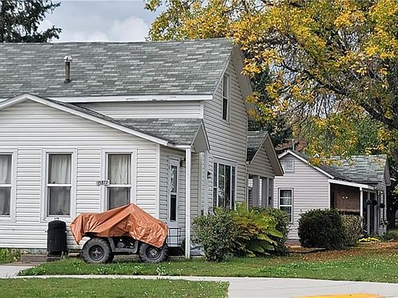 On the corner of 2nd and Wisconsin in Hayward this property has a commercial zoning. Currently being residentially rented as 2 units - 1 a studio apartment and the other a 3 bedroom 1 bath 2 story with eat in kitchen and living room. Front covered porch and side entry porch. Purchase for rental income, occupy 1 and have a business use in the other or convert back to 1 large single-family home. Vinyl sided exterior. Crawl space spray foamed in 2025.