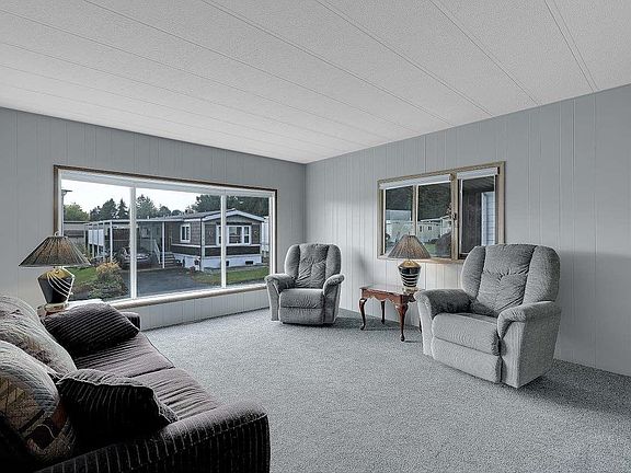 This 1,259 sq. ft. home offers two fully private living spaces, each with its own living room, bedroom, and bathroom — perfect for extended family or a roommate arrangement. The home features new flooring, a renovated kitchen with updated cabinetry, countertops, and appliances, and a fresh coat of interior paint, new hot water tank, newer gas furnace with central air-conditioning vinyl siding, covered deck, gas BBQ hook up, single carport plus 2nd parking spot in driveway, earth quake tie downs, lots of storage, close to busses and shopping. You own the land, with only $200.00 per month maintenance fees. Completely move-in ready for the next owner.