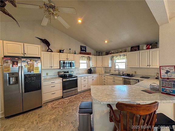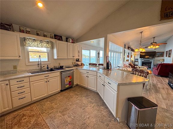 Welcome to your ideal lakefront getaway! This charming 2-bedroom, 1-bath home sits perfectly on the main channel of the Gravois Arm, offering stunning, unobstructed waterfront views. This great property not only has stunning views, but has deep water year-round for all your boating needs! Enjoy the beauty of the lake year-round through large picture windows that bring the outdoors in, or step outside to the spacious deck with a slider door, perfect for relaxing, entertaining, and soaking up the sunsets. This property comes fully equipped for lake living with a 2-well dock and bunkhouse, (no bathroom) ideal for hosting guests, storing gear, or creating a fun lakeside hangout. You’ll also appreciate the two carports, giving you plenty of covered parking and storage along with a tool shed. Whether you’re looking for a weekend retreat, vacation rental, or your full-time lake home, this one has everything you need to enjoy lake life at its best. Peaceful setting, incredible views, and easy access to the water—don’t miss this lakefront gem!