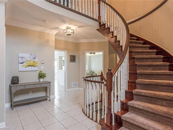 Feel right at home as soon as you enter this beautiful 2 storey brick house in the highly desirable west end. This immaculately maintained home features 4 spacious bedrooms and 3.5 bathrooms. The large family room and dining room features a 3-sided gas fireplace, 9 foot ceilings and crown moulding. The eat-in kitchen offers stainless steel appliances and walk-out to a fully fenced backyard. The main floor also has a 2 piece powder room, mudroom with laundry and access to double car garage. The spectacular spiral staircase will bring you to the upper level, which has 4 bedrooms, including the spacious and bright master bedroom with walk-in closet and 5 piece ensuite bathroom. Continue down the spiral staircase to the partially finished basement with an office/den and newer bathroom. The unfinished area provides opportunity for more living space or plenty of storage. This is a great family home in an excellent school district. Completely move-in ready. A pre-inspected home.
