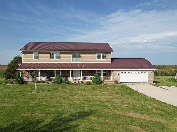 Willing to pay buyers commission. Beautiful home on 3.64 Acres on a hard surface road ready for a family to enjoy country living. This beautiful 2 story is located in a family-friendly neighborhood, on a quiet street, in a country setting, close to 5 miles south of Riverside Ia. The main level has carpet, tile, laminate and conventional ceiling. Also on the main level are a bedroom, a full bath, a half bath and laundry. The kitchen features tile floors, solid surface counters, pantry and breakfast bar. The master bedroom is located on the main level and features carpet floors, conventional ceiling and walk-in closet. The attached master bath includes laminate floors, solid surface counters, jetted tub and one piece shower. The Upper level includes 3 bedrooms and 2 full baths. The partially finished walkout lower level features a bedroom, full bath, workout area and storage area. Outside you'll find a treated wood deck, three seasons porch and patio overlooking the yard with invisible fence and mature trees. Exterior features include a great view, storage shed and detached building.