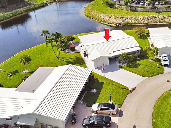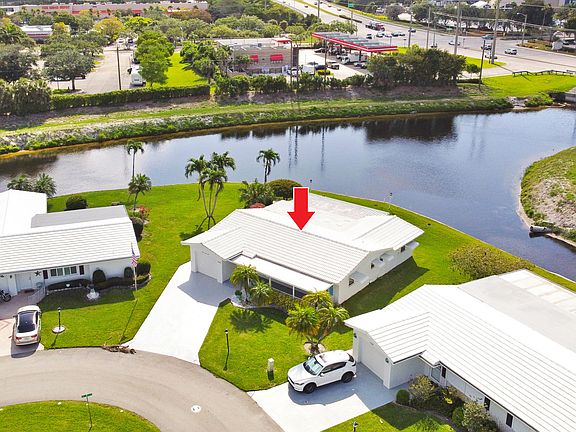 Welcome to this stunning waterfront home on an oversized point lot, where a beautiful porch greets you upon arrival. With renovations throughout, every room in this home is elegantly updated, featuring a granite and wood kitchen with stainless steel appliances, an open concept design, and a built-in computer area. The updated bathrooms are both stylish and functional, with plantation shutters adding an extra touch of sophistication. The 10 x 30 glass-enclosed porch provides breathtaking views of the waterfront, and hurricane impact windows in the front of the home provide added peace of mind. Multiple patios surround the home, offering ample outdoor space to relax and entertain. Enjoy fishing and kayaking right from your own backyard, as the E-4 canal connects to both Lake Osborne and Lake Ida. As a resident of Leisureville, you'll have access to an array of amenities, including free golf and use of the three clubhouses. The paid rec lease ensures that you can enjoy all of these perks worry-free. Conveniently located just 20 minutes from PBI airport, this home is the perfect oasis for those seeking a tranquil waterfront lifestyle.