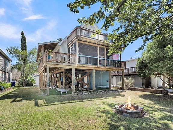This home is not only in a fantastic location, across the street from the marsh AND on the lake, but it also has an amazing personality. The curb appeal draws you in, and once up the stairs, the porch, the shaded backyard, and the lakeview cause you to pause and take it all in! Inside, the open concept, with the creative full remodel of the kitchen, flows into the living area and opens to a glorious screened-in back porch. This level features two bedrooms, a full bathroom, and a half bathroom. Upstairs is the owner's retreat, complete with an additional flex/bedroom, easily a home office or baby's room. The remodeled bathroom is creatively designed, featuring a large tiled walk-in shower and dual farmhouse sinks. This bedroom opens onto a full upper porch, offering magnificent views of the lake and sunsets. Many thoughtful and creative touches have been added to this home to give it its unique appeal; it needs to be seen to be appreciated! Under the house, you will love having great lockable storage for your beach toys because you are 2 miles to toes in the sand of Folly Beach! The neighborhood has no HOA, can STR, and is a very friendly, happy place that is continually rising in value due to its location to Folly Beach and downtown. Come and see why!