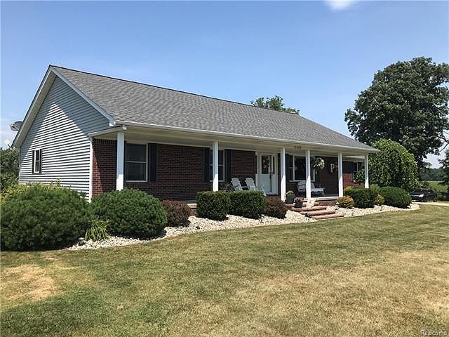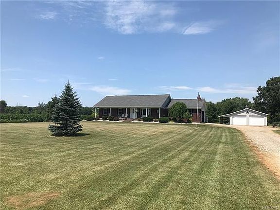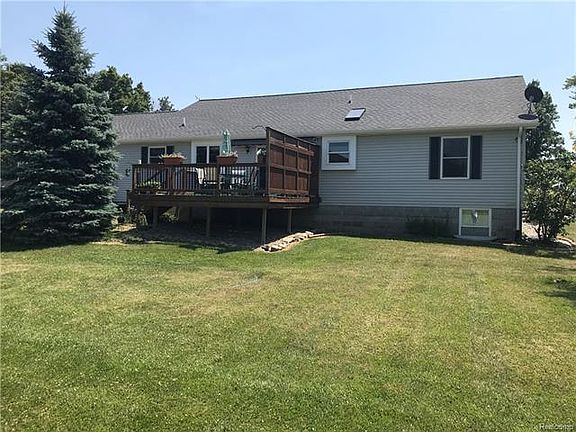 She is a Magnificent home that sits on a quiet country road nestled between the town of Almont and Capac. She has great curb appeal on 2 acres and is manicured to perfection. Entering the great room and kitchen, you are welcomed with tall vaulted ceilings and an open floor plan that is very inviting. The home has hardwood flooring galore and beautiful granite countertops in the kitchen and both bathrooms. Walking down to the lower level, you have yet another warming finished living area with day windows, half bath and a wet bar with more beautiful granite countertops. Other features include Anderson windows, 30x40 pole barn with a concrete lean to, insulated workshop that has a heater, a sun-setter awning, fenced in area for 4 legged friends, wiring for a generator, two storage closets and a skuttle for fresh air due to this home being insulated and spray foamed airtight. New roof 2017. The deck off the back of the home is perfect for relaxing and enjoying the outdoors.