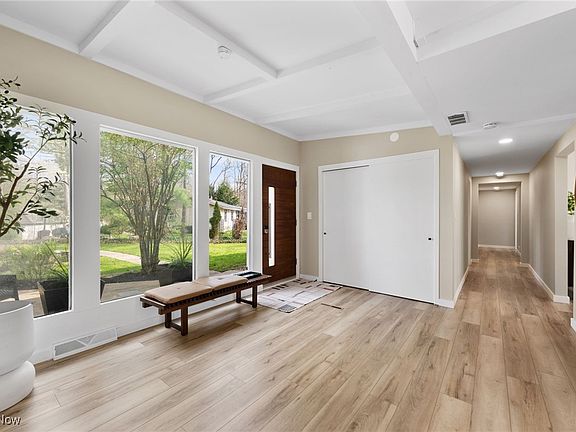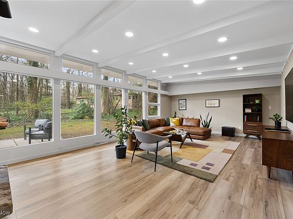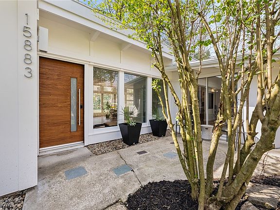 A Mid-Century Modern Masterpiece Reimagined for Today’s Finest Living. Welcome to 15883 Sylvan Road, a rare and remarkable offering. Designed in 1954 by esteemed local architect Thomas E. Caves, this mid-century modern masterpiece presents a unique opportunity to own a thoughtfully restored piece of architectural history. Influenced by the visionary styles of Frank Lloyd Wright and Mies van der Rohe, this mid-century gem embraces the principles of simplicity, functionality, and seamless integration with nature. Privately tucked away on a beautifully wooded ¾-acre lot, the setting offers a rare sense of tranquility — all just moments from the charming boutiques and dining of the Village, the scenic Chagrin River waterfalls, award-winning Chagrin Falls schools, and the advantage of Geauga County taxes. Inside, effortless sophistication awaits. The open-concept layout is framed by vaulted ceilings and dramatic floor-to-ceiling windows, bathing the living spaces in natural light. A sleek two-sided fireplace provides a striking centerpiece, while the gourmet kitchen is perfectly designed for everything from relaxed mornings to vibrant gatherings. The owner's suite is a true sanctuary, featuring a generous walk-in closet and a spa-caliber en-suite bath with dual vanities and an indulgent walk-in shower adorned with floor-to-ceiling tile. Two additional bedrooms and a beautifully renovated guest bath offer luxurious accommodations for family and guests. Outside, the peaceful, park-like backyard invites quiet moments or lively entertaining on the elegant paver patio. A four-car garage completes the home, providing exceptional space for vehicles, hobbies, and storage. A rare blend of architectural integrity and modern luxury—this is one you won't want to miss. Schedule your private viewing today!